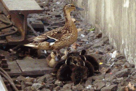В течение нескольких часов движение поездов в немецком городе Киль было парализовано... из-за птицы. Мама-утка привела на железнодорожные пути целый выводок утят и устроилась отдохнуть. Над спасением пернатой семьи трудилась команда профессионалов.