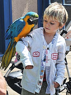Трехлетний сынишка Гвен Стефани продемонстрировал свое бесстрашие, и буквально подставил свое плечо большому попугаю. Дружеские отношения между птицей и малышом завязались в Pacific Park города Санта-Моника.