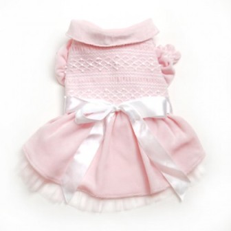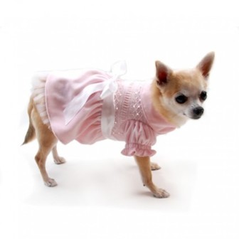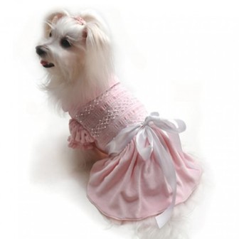 Сомневаетесь, брать ли миниатюрную собаку на вечеринку? Между прочим, в таком платье она будет выглядеть не хуже вас. Это пастельно - розовое, необычайно приятное на ощупь платье ручной работы настоящими жемчужинами, а его подол сделан вручную из элегантной тюли. Дополняет композицию платья изящный шелковый бант.