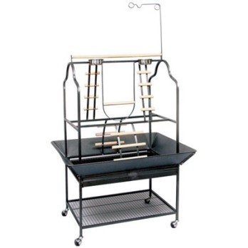 Сделанная из закаленного металла и деревянных элементов, компактная площадка снабжена колесиками для удобства перемещения. Есть также специальный поддон, да и вся конструкция легко моется даже от тяжелых загрязнений. А попугаи останутся довольны увлекательными лесенками и жердочками.