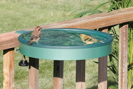 В любую погоду птицы просто обожают принимать ванны! Достаточно установить ванночку для птиц на своем дачном участке или балконе, и вы сможете вдоволь наблюдать за пернатыми, да и кассета со звуками пения птиц больше не понадобится: вы и так сможете услышать его в любой момент! Каких только ванночек для птиц не предлагает фирма Duncraft. Вот, например, темно-синяя пластиковая ванна (см. фото1), в которой птицы будут с удовольствием чистить перышки и довольно чирикать. Крепится она на балконные перила.